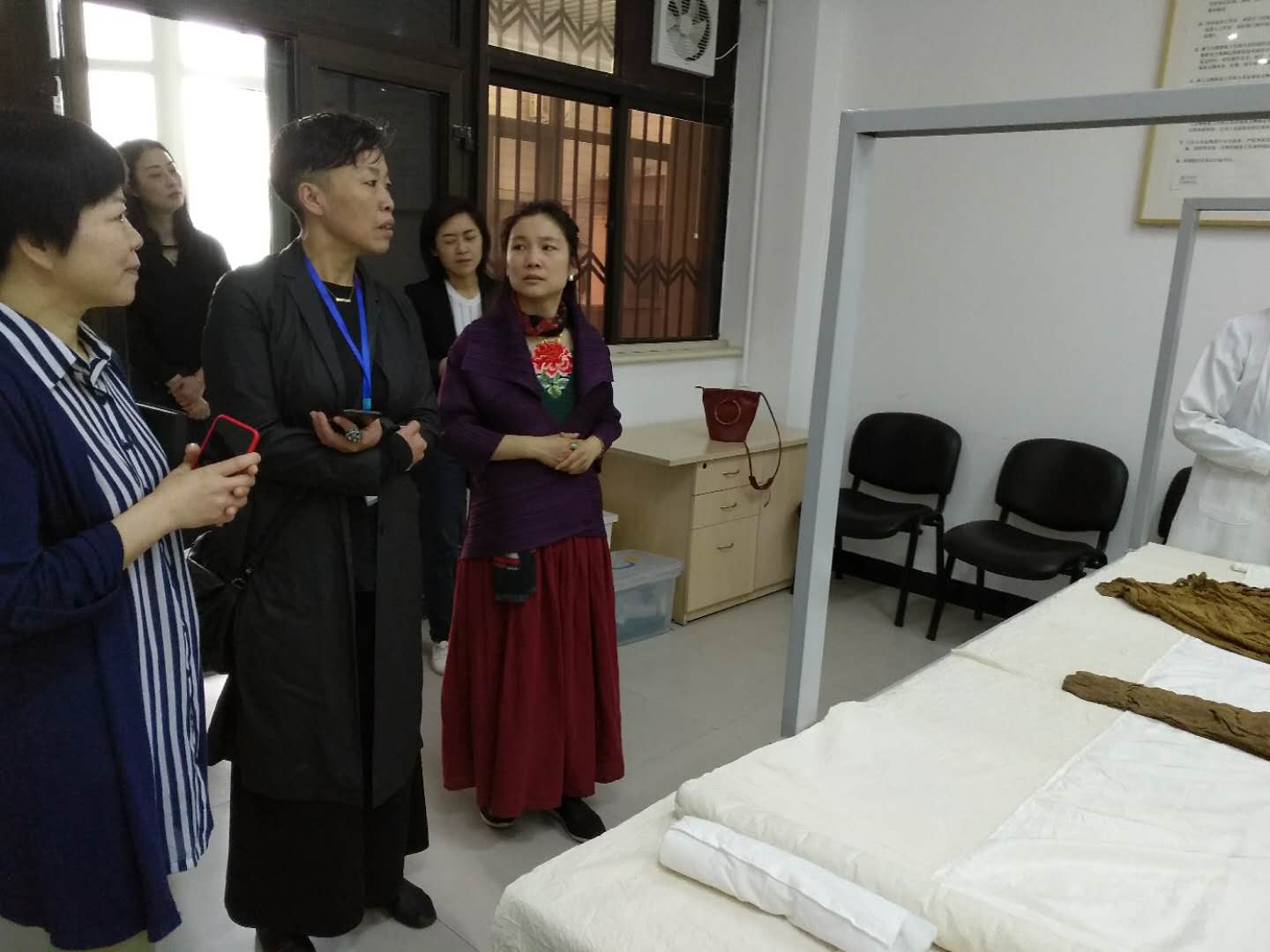 展廳參觀結束后,專家組山東藝術學院設計學院院長荊雷教授走訪了民族服飾博物館紡織品文物修復室,調查了修復室的基本情況和對在校生專業培養方面所做的工作。