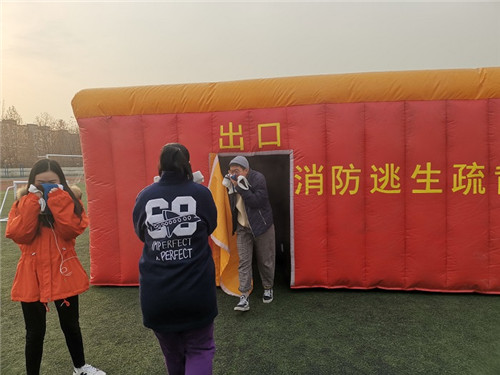 本次活動由校區綜合辦主辦,學生辦、行政辦協辦,校區一千四百余名師生參加了此次活動。活動引進了消防逃生疏散體驗屋、滅火器實訓體驗屋,裝備專業的消防培訓演練器材,力求讓每一位參加培訓的師生體驗到逼真的火災場景,掌握實用的滅火、逃生技巧。
