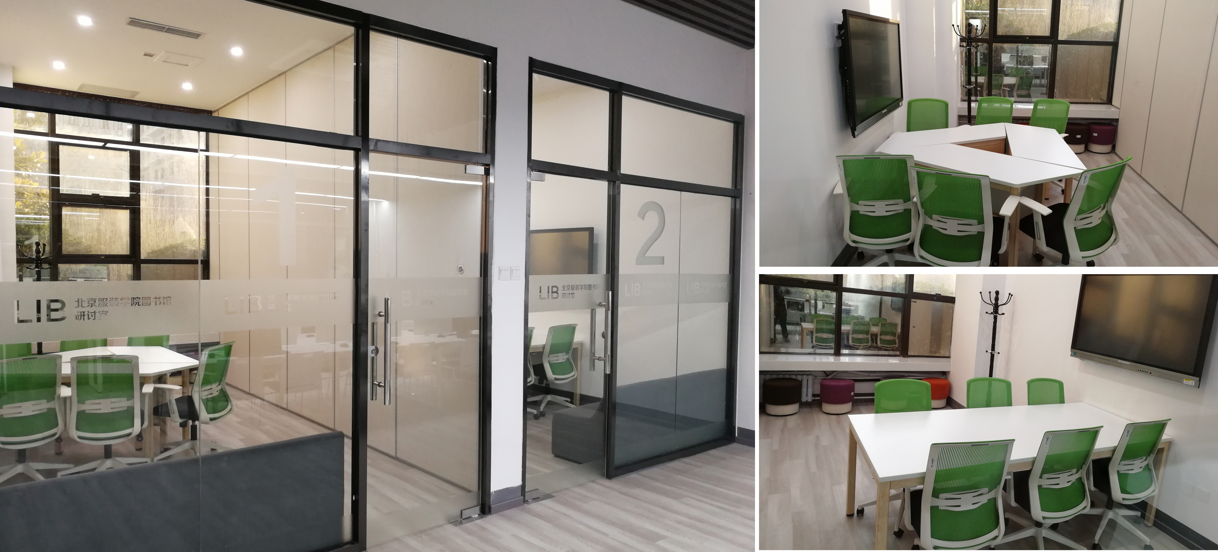 知識學習中心位于圖書館一層B105房間,整體劃分為自助服務區、休閑閱覽區、小組研討室、多媒體學習區四個分區。其中自助服務區提供有書刊檢索機、自助打印復印掃描一體機、電子讀報機、電子書借閱機等,可利用資源包括電子圖書33000冊、電子期刊1162種、電子報紙 200 種;休閑閱覽區共有不同類型的座位24個,供讀者學習閱覽、休閑交流;小組研討室共有2間,配有65寸LED屏幕/互動電子白板,最多可容納20人,3名以上讀者即可通過圖書館公眾號在線預約使用;多媒體學習區目前配有18個座位、9臺閱覽一體機,讀者可以在此使用圖書館海量的數字資源。