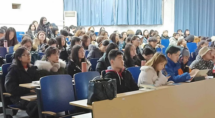 兩個小時的講座中蘇泓月將花蕊夫人所處的晚唐五代一言一句展現出來。學生們跟隨蘇泓月老師一同去探訪了一千多年前的那一個時代。講座結束后,學生們報以熱烈的掌聲。講座雖然捷順了,但是對晚唐五代的追溯仍然在進行,也許未來的某一天,花蕊夫人筆下的繁盛艷景會以更令人印象深刻的形式出現在人們面前。