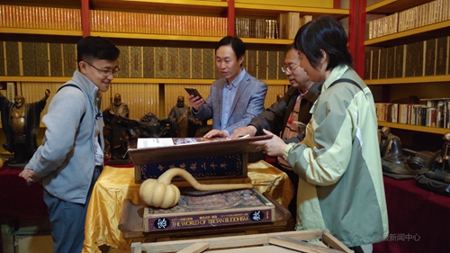 大家首先參觀了東方藝術文獻館的藝術品館藏。參觀過程中,館員們對該館收藏的中國繪畫藝術作品、佛教文獻、中國佛教藝術品等產生了深厚的興趣,并就藝術作品的收藏、保存、展示進行了咨詢討論。