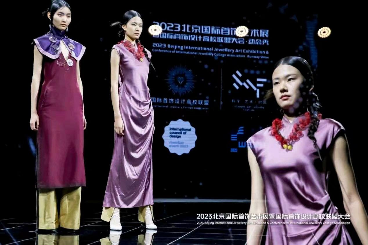 開幕式當天,兩場大秀精彩紛呈。首飾作品T臺秀展示了從來自全球13個國家和地區(qū)的藝術(shù)家作品中評選出的200余件優(yōu)秀代表作品。美輪美奐的場景、時尚創(chuàng)意感極強的首飾,使觀眾享受了一場藝術(shù)的饕餮盛宴;2023第八屆國際青年設(shè)計師邀請賽優(yōu)秀作品展演圍繞“時尚+科技”的主題,吸引了來自世界各地數(shù)十個國家和地區(qū)的上千名青年設(shè)計師參加。