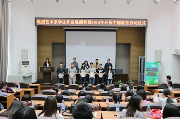 活動首先回顧總結了“型而上下”第四屆學生作品展的各項工作,系主任田輝老師發表講話并宣布獲獎名單。與會領導隨后為獲獎學生頒獎。在2014年環保主題系列教育活動啟動儀式上,造型藝術系黨總支書記吳小軍老師宣讀了《2014年環保主題系列教育活動實施方案》,此次教育活動主題為“同一個地球共同的責任”。活動由主題班團活動、主題創意速寫作品征集活動、紅色1+1、暑期社會實踐、環保主題學生作品展組成。與會師生還共同觀看了環保紀錄片。