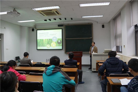 化纖協會科技部主任萬雷首先介紹了化纖科技協會的的綠宇基金、恒逸基金的建立目的以及主要資助的研究范圍,積極邀請材料學院師生申報基金所支持的研究方向。同時也鼓勵材料學院的師生申報恒逸基金的論文評獎活動。最后,四川大學的環境學院教授王洪濤老師介紹了產品生命周期評價研究與應用的專題講座。