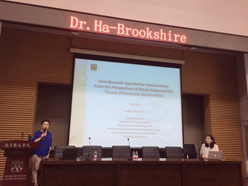 應商學院的邀請,密蘇里大學人類環境科學學院副院長Jung Ha-Brookshire和助理教授趙莉博士于5月31日分別在科技報告廳和綜合樓1702舉行了“可持續發展研究新領域:基于企業可持續發展的道德責任理論”和“時尚信息學——時尚產業中的大數據”的專題講座。商學院教師、研究生和本科生共90多人聽取了報告。