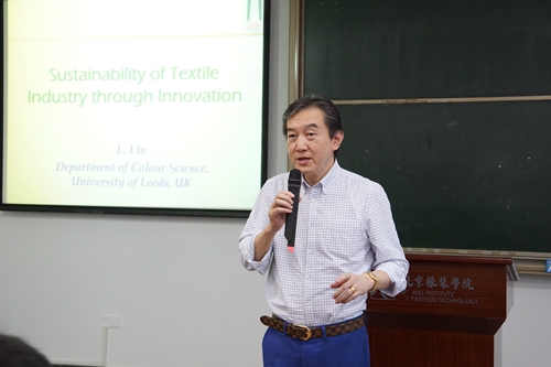 林瓏教授為我院師生做了題為“Sustainability of Textile Industry through Innovation” 《以創(chuàng)新促進(jìn)紡織工業(yè)可持續(xù)發(fā)展》的專題學(xué)術(shù)講座。講座一方面向我們介紹了利茲大學(xué)彩化系的科研方向,同時也以生動的范例向大家介紹了紡織品使用對環(huán)境可持續(xù)發(fā)展帶來的壓力。林教授互動式的授課方法啟發(fā)同學(xué)們思考紡織品對自然環(huán)境帶來的沖擊,并以“微纖維 Microfiber bits”為例,介紹了國外目前集中關(guān)注的洗滌紡織品產(chǎn)生的微纖維對海洋生態(tài)造成的沖擊,從而引出了他在織物結(jié)構(gòu)對紡織品微纖維產(chǎn)生數(shù)量影響的研究,在聽眾間引發(fā)了熱烈討論。