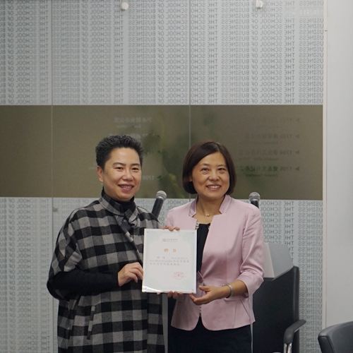 授課期間,舉辦了Jung Ha-Brookshire教授商學院 “榮譽客座教授” 證書授予儀式,商學院院長趙洪珊教授、副院長方剛教授與Jung Ha-Brookshire教授進一步深入探討了北服商學院同美國密蘇里大學未來的交流與合作問題。趙洪珊教授表示將和Jung Ha-Brookshire教授以及密蘇里大學建立一種長期、持續和穩定的合作關系,并致力于提供給學生們更多國際交流交換的機會,引入更豐富的國際化教學資源,充分實現商學院的時尚國際化發展,為中國時尚產業培養更多領軍人才,做中國最懂時尚管理的商學院。