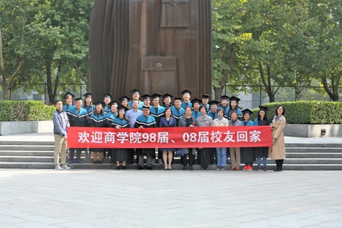 在自由交流環節,校友們回憶了機電樓四層、老食堂周末的交誼舞會、廊坊校區的美食一條街、國慶60周年群眾游行等等。并就明年60年校慶商學院活動、商學院未來發展、商學院校友工作等方面提供了許多有價值的意見和建議。校友們紛紛表示,大學生活是學子記憶中抹不去的印記,不管多久母校永遠是心頭最深沉的牽掛。會后,商學院組織校友們在中山裝廣場合影并參觀了校園。