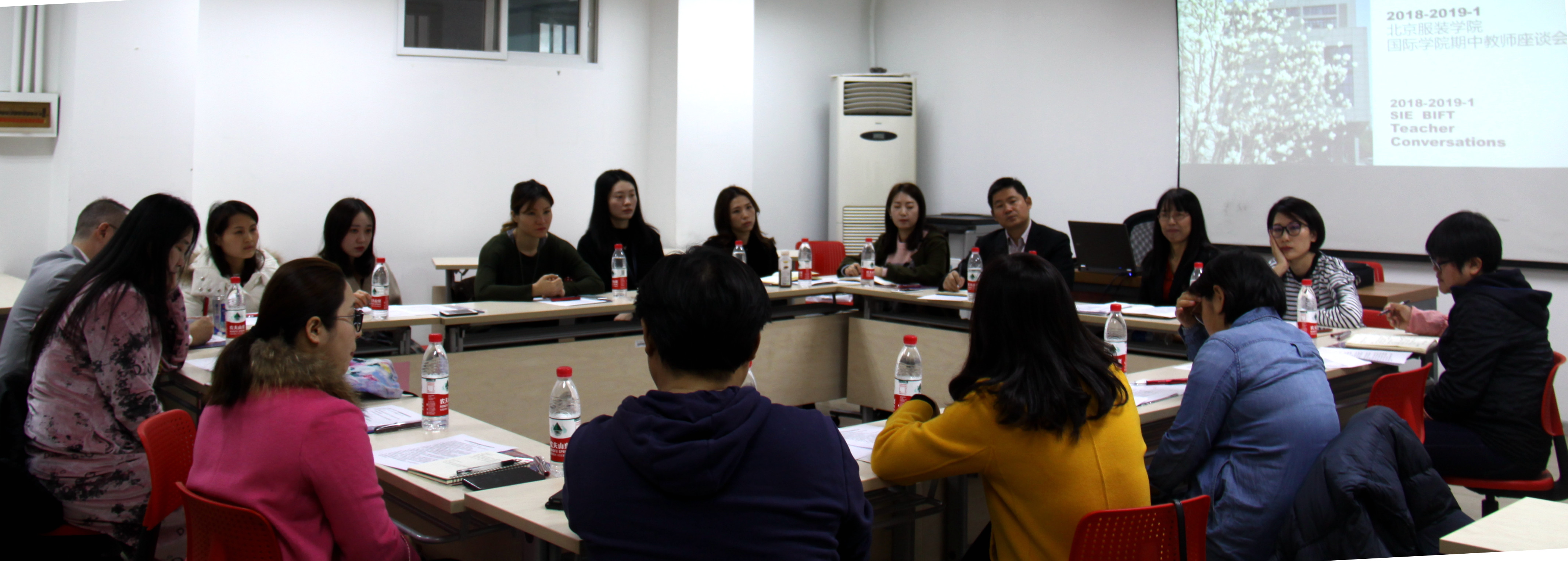 11月22日上午,國際學院在5號樓801室召開2018-2019學年第一學期期中檢查教師座談會。本學期擔任國際學院一年級留學生班、港澳臺僑生班、全英授課表演班部分教師:高海軍、謝天曉、盛思喆、趙冰清、郭東芳、TINNEY、丁培利、韓文艷、王香琴、萬丁、李燕等11人參加了座談會,國際學院院長席宇梅攜教學教務主管暴巍、招生主管周旻、學生工作教師張海霞及全英授課表演班班主任梁怡參會。會議由暴巍主持。