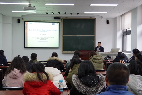 12月21日下午,西班牙馬德里高等材料研究院資深科學家王德義教授到訪我校材料設計與工程學院。王教授的主要研究方向為高性能阻燃多功能基聚合物復合材料的制備及應用,王教授首先做了題目為“Study on the smoke suppression of polymer combustion”的學術報告,給學生們系統性介紹了聚合物燃燒過程中“煙”的生成機理以及其研究團隊在聚合物的抑煙性能改性方面的最新研究進展,主要集中于多種納米結構材料的構建及抑煙性改善應用,包括埃洛石納米管、介孔/微孔硅材料、氮化硼納米片層等。