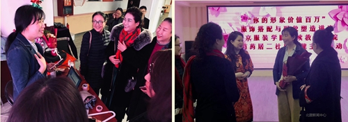 接著,楊老師結(jié)合自己多年的服裝設(shè)計(jì)及教學(xué)經(jīng)驗(yàn),用大量生動(dòng)的圖片與事例,闡述了形象美的八大要素、形象造型美的規(guī)律、色彩的了解等多項(xiàng)內(nèi)容。其間,她還邀請(qǐng)幾位女士來(lái)到臺(tái)前,現(xiàn)場(chǎng)演繹服飾搭配,用同一款式詮釋不同風(fēng)格,傳授日常搭配的錦囊妙計(jì),引導(dǎo)女性朋友們發(fā)現(xiàn)自己的獨(dú)特魅力,適宜地塑造個(gè)人形象。