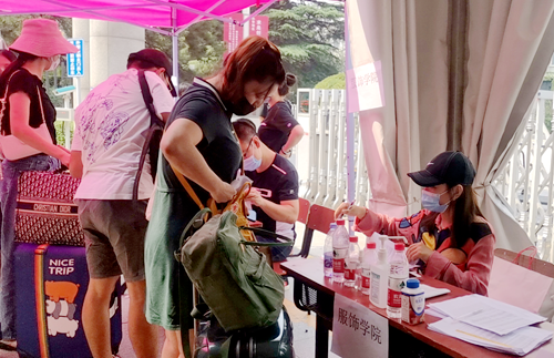 在學(xué)校南門報(bào)到現(xiàn)場,學(xué)院輔導(dǎo)員蔣祿微、王俊堯、王嘉暄三位老師對(duì)“健康碼”、入校核驗(yàn)檢測進(jìn)行審核,重點(diǎn)檢查學(xué)生的核酸檢測結(jié)果及有效時(shí)間,并再次叮囑學(xué)生返校后早午晚報(bào)體溫等相關(guān)入校要求。解坤老師負(fù)責(zé)芍藥居城六區(qū)住宿學(xué)生的報(bào)到以及材料核查工作。
