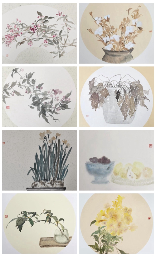 面對這種情況,美術學院師生積極應對,充分依托新校區現有的景觀、環境開展有關課程。例如,在中國畫專業18902班的“寫意花鳥寫生”課中,任課教師帶領同學們“就地取材”,對校園中的樹木、植被及綠化景觀進行有效利用。開課前一周,教師就對校園內可供寫生的地點預先考察。授課時,教師針對不同花木的生理特點與形態特征進行現場講解與范畫演示,從畫面構圖要素、黑白層次安排及筆墨用法要領等方面做了細致分析。在范畫演示環節,教師隨時傳授利用材料材質特性的技巧,使同學們對中國畫材料豐富的藝術表現力有了更多的認識。除了課堂講解與演示,教師還注意在作業講評環節中促進同學之間相互的激勵與啟發,找出每位同學畫中的“閃光點”,引導其他人在接下來的練習中借鑒其成功經驗。教師力求在傳授課程大綱要求掌握的技法基礎上,鼓勵同學們尋找自己最喜愛,運用最嫻熟的筆墨表現語言與畫面布局手法,尊重每位同學審美取向的個性化發展。