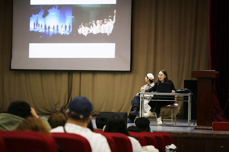 10月28日,由北服校友會和學生處大學生就業指導服務中心共同主辦的系列演講分享論壇,第二期特別邀請榮獲2021春夏上海時裝周最具商業潛質獎的校友品牌“夾生”回校分享品牌創業故事。晚19:30,北校區小禮堂座無虛席,服裝藝術與工程學院20級新生積極參與、提前到場,期待著和品牌創始人,亦是學姐的兩位設計師學習交流原創設計師的成長及創業之路。
