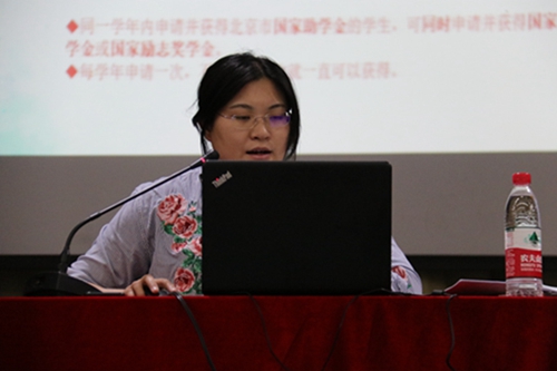 講座首先介紹了我校資助體系的基本情況,我校資助體系是以國家資助為主體,社會資助為支撐,學校資助為重點,獎、貸、助、勤、補、減六位一體,統籌協調的完善資助體系。接下來,楊賽老師主要圍繞國家助學貸款,獎學金,助學金和應征入伍服義務兵役學費補償貸款代償及學費資助四個主要方面對我校學生資助政策展開了詳細的介紹。