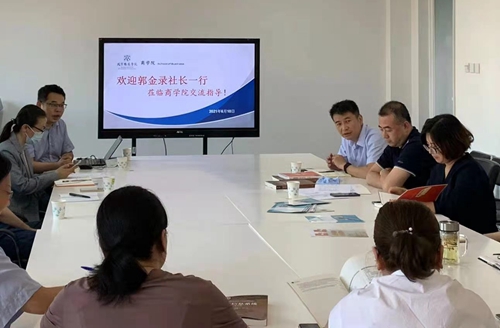 6月10日上午,高等教育出版社經管分社社長郭金錄一行蒞臨商學院,與商學院教師代表開展交流座談活動。會議由商學院院長席陽教授主持,教學副院長、教研室主任、骨干教師代表參加了座談會。